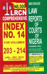Law Reports of Courts of Nigeria Comprehensive Index No. 14 to LRCN (2012) Jan. 2012 – Dec. 2012 Volumes 203 – 214