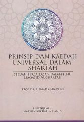 Buku ini memberi fokus terhadap perbincangan berkaitan prinsip dan kaedah universal dalam Shari'ah. Prinsip dan kaedah universal merupakan antara aspek terpenting dalam memahami Shari'ah serta merupakan antara topik penting dalam ilmu Maqasid al-Shari'ah. Hal tersebut kerana kefahaman terhadap Shari'ah akan bermasalah sekiranya tidak dirujuk kepada prinsip dan kaedah utamanya yang bersifat universal merentas masa dan tempat. Prinsip dan kaedah yang terkandung dalam buku ini membentuk kaedah berfikir yang lebih bersistem, holistik, terbuka, multidimensi dan berstruktur. Pendekatan penulis yang menulis dan menyusun perbincangan dengan baik menjadikan buku ini lebih mudah difahami oleh para pembaca.